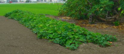 生き生きと葉を茂らせているのは、「さつまいも」だと思います