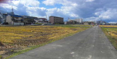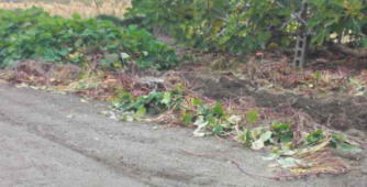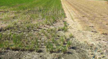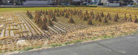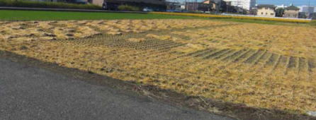 綺麗に並んだ稲の茎と刈り終わった後のワラ