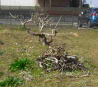 切った枝は、何故か木の横に置かれてるんです