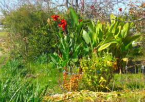 真中は、カンナの花が見えましたが、咲き残りでしょうか