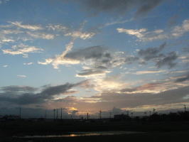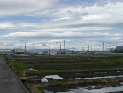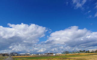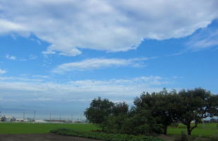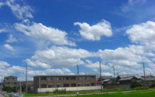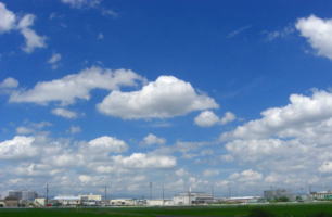 私の大好きな田んぼ道 その真ん中で見あげる空 どこまでも広がって、深いブルー 雲達が、のびのびと、遊んでいる 私も、四方を見上げて雲と遊ぶ 幸せな空間・時間 |