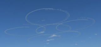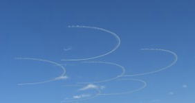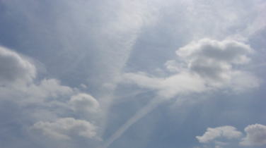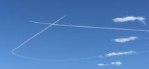 陽の光と飛行機雲が、一瞬、見せてくれた空のショー