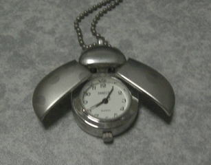 先のつのの様な所を押すと、羽が開いて、時間を教えてくれます