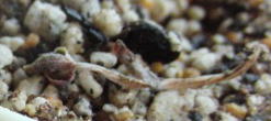 葉刺しをしようと寝かしておいたら、葉の根元に、微かな根が・・・