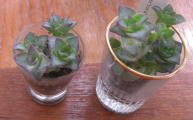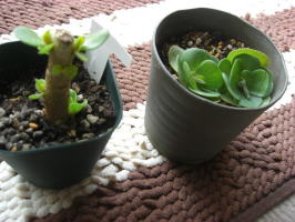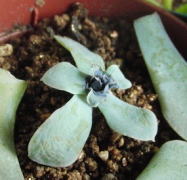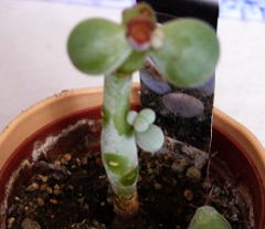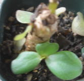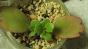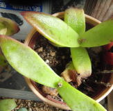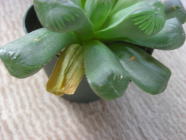 | 右側が枯れこんでしまいましたが 受け皿に水を入れてやると 復活する様になりました 真中からは新芽が出始めました |